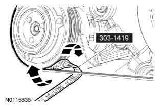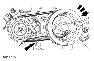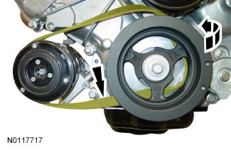 - Stage 2: Position the A/C compressor belt behind the crankshaft pulley with the accessory drive belt ribs facing towards the front of the vehicle.