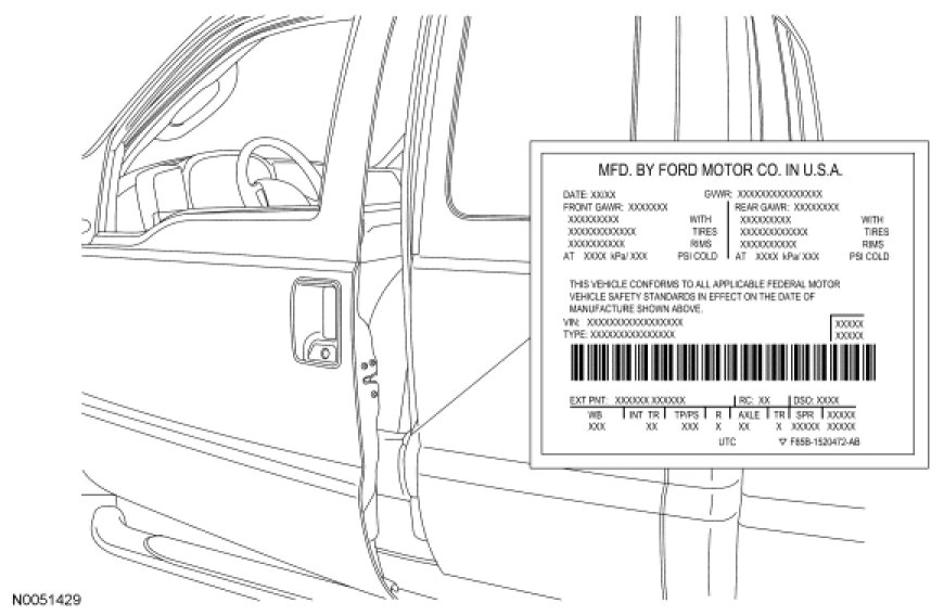The Vehicle Certification (VC) label contains the manufacturer name, the month and year of manufacture, the certification statement and the Vehicle Identification Number (VIN). It also includes Gross Vehicle Weight Rating (GVWR).