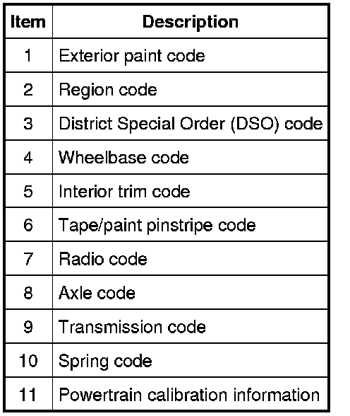 Powertrain calibration information is printed in the lower right corner of the VC. Only the base calibration information is printed. Revision levels will not appear, however, they can be obtained through a scan tool using the most current software revision.