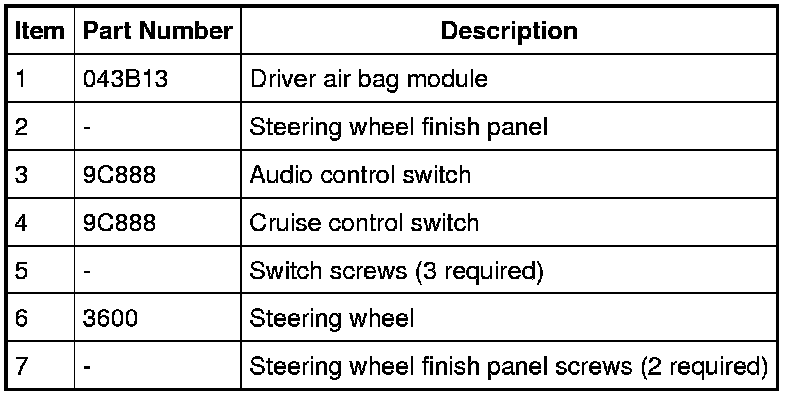 1. Remove the driver air bag module. For additional information, refer to Supplemental Restraint System Driver Air Bag Module.