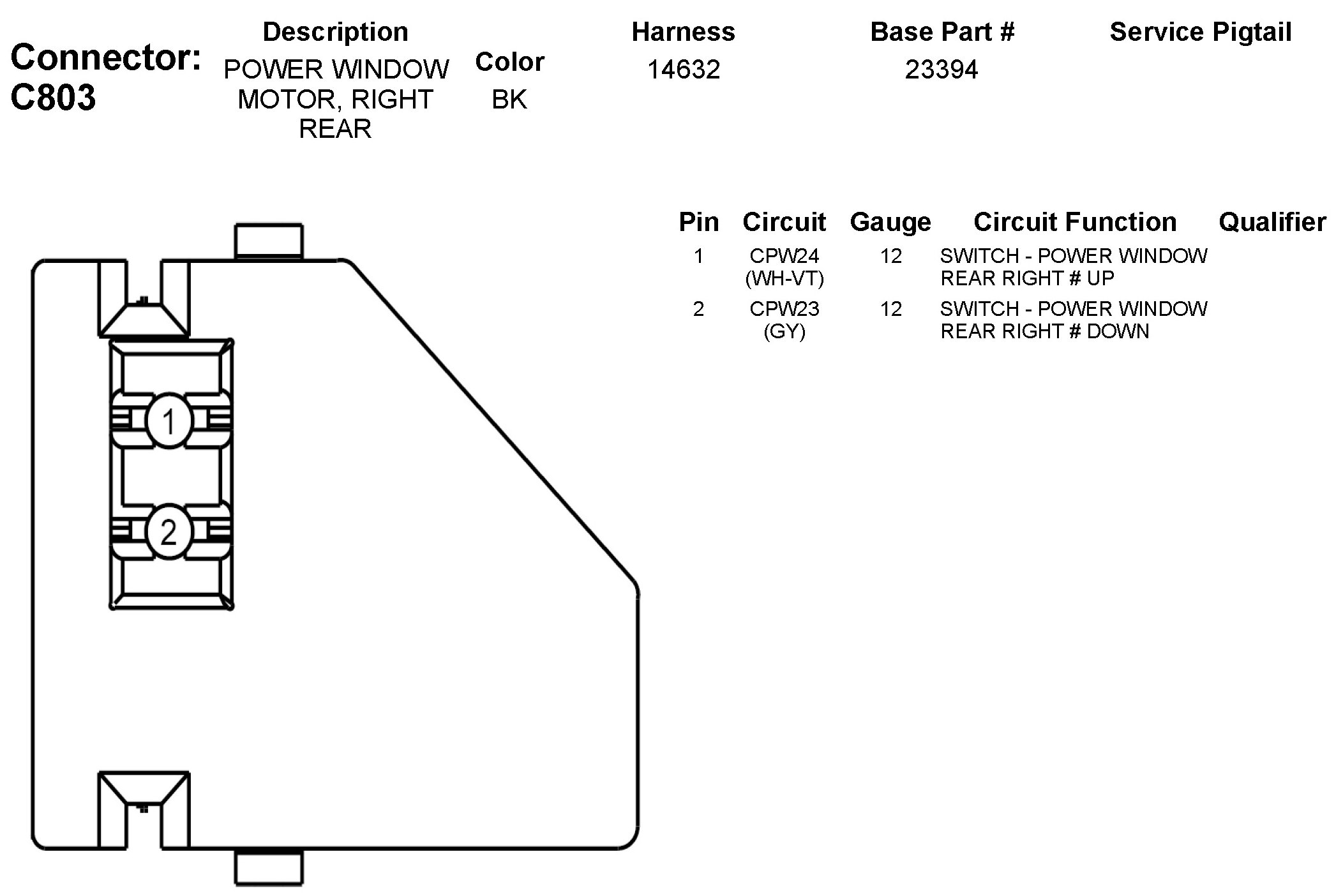C803 Power Window Motor, Right Rear