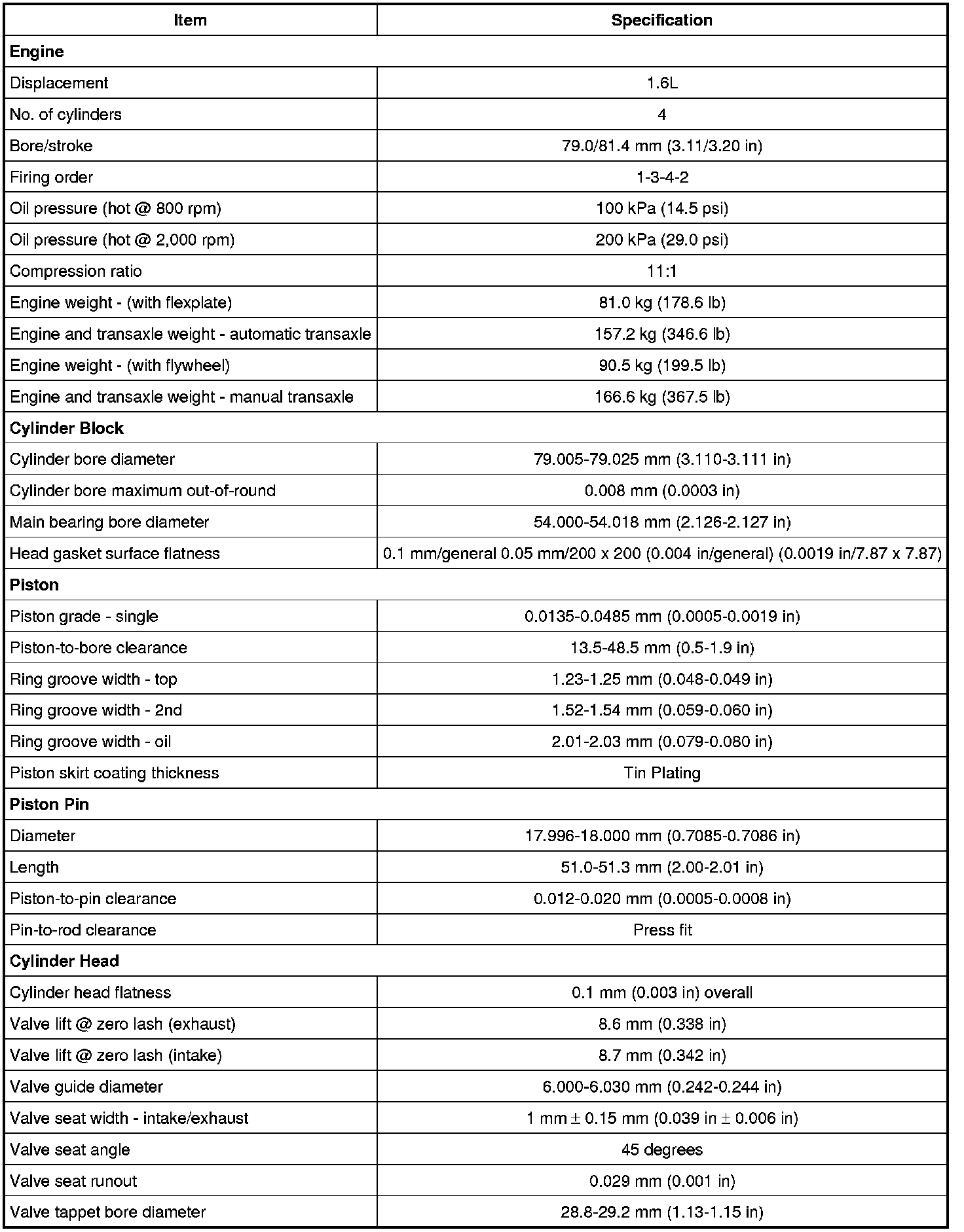 Cylinder Head Assembly: Specifications