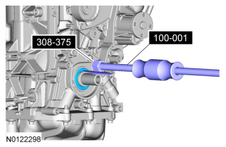 NOTICE: Do not loosen or remove the crankshaft pulley bolt without first installing the special tools. The crankshaft pulley and the crankshaft timing sprocket are not keyed to the crankshaft. Before any repair requiring loosening or removal of the crankshaft pulley bolt, the crankshaft and camshafts must be locked in place by the special service tools, otherwise severe engine damage can occur.