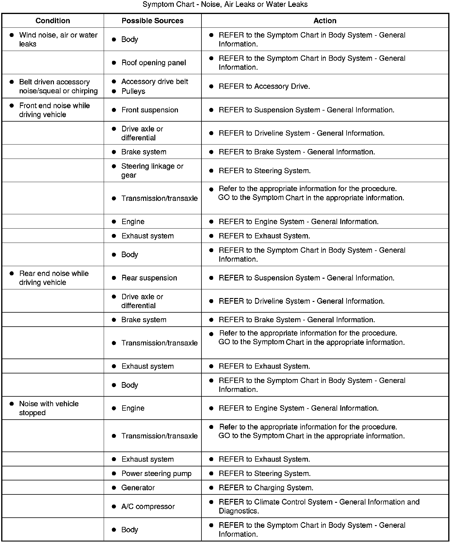 - Refer to the indicated information to identify and diagnose the symptom or confirm that the system is not the source of the condition.