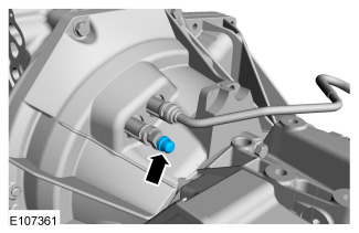 5. Install the special tool and loosen the clutch slave cylinder bleed fitting.