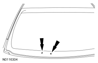 2. Verify that the RH and LH wiper blade tips are aligned to the "T" marks on the lower windshield glass.