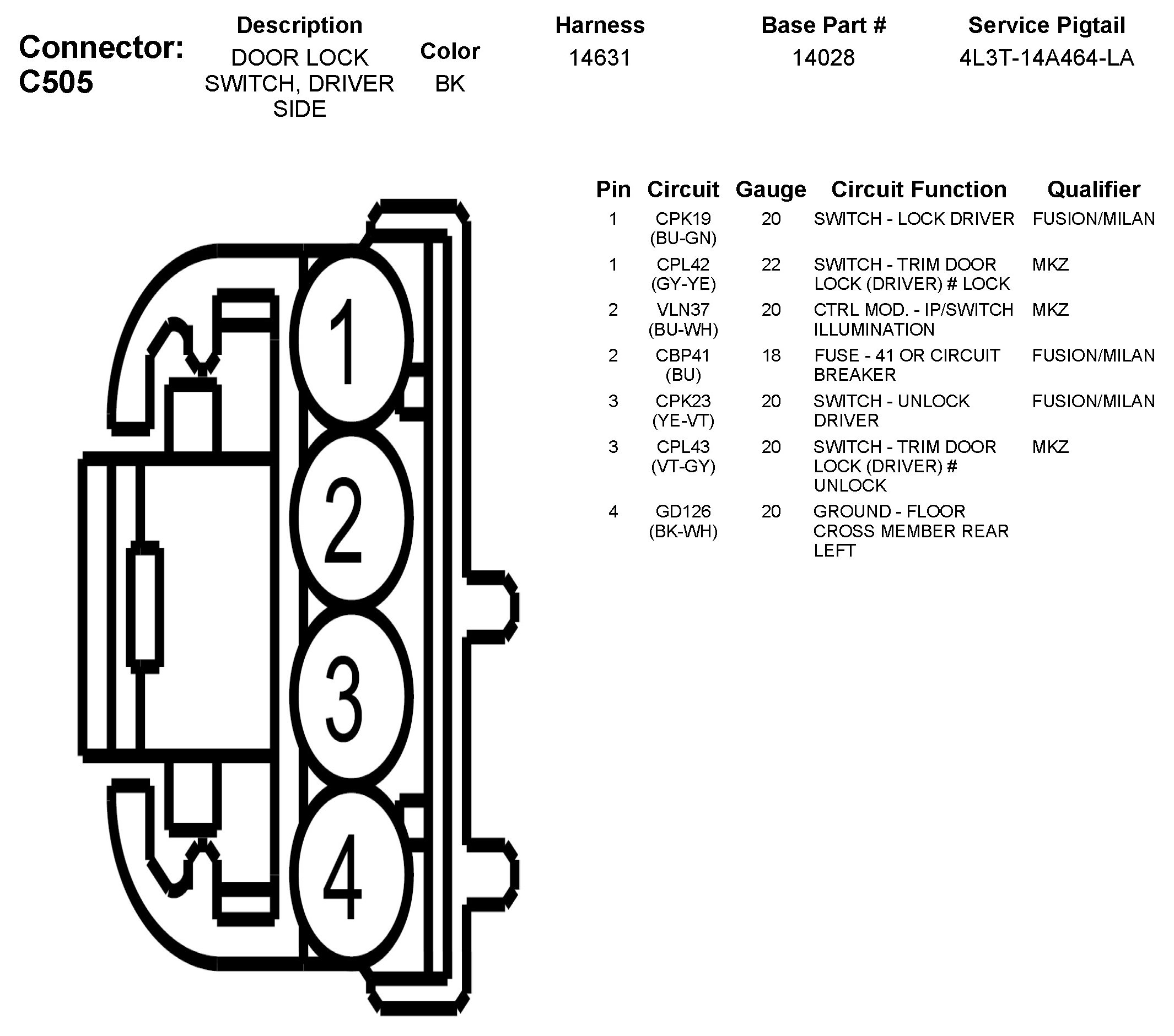C505 Door Lock Switch, Driver Side
