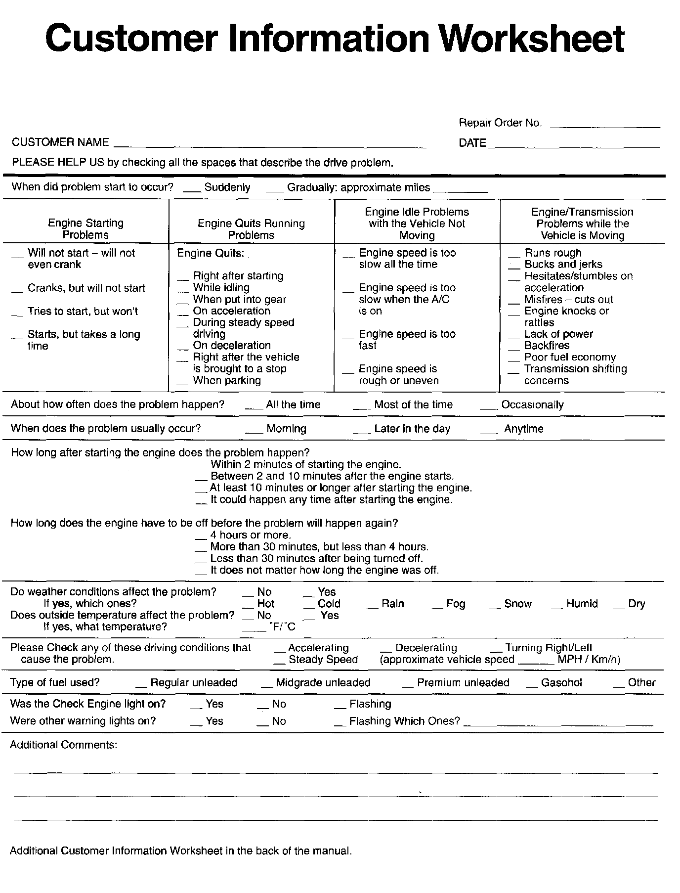 Customer Information Worksheet