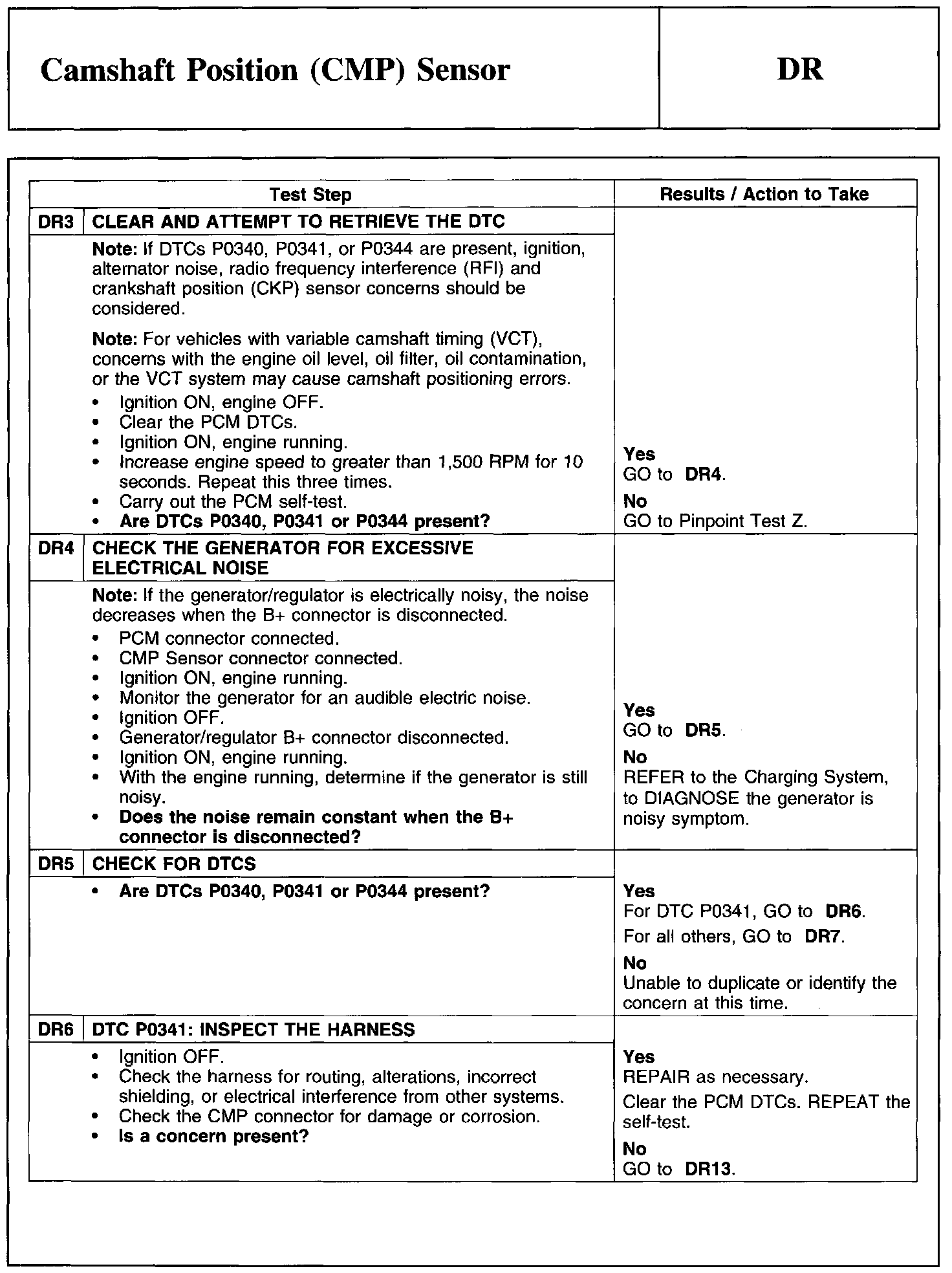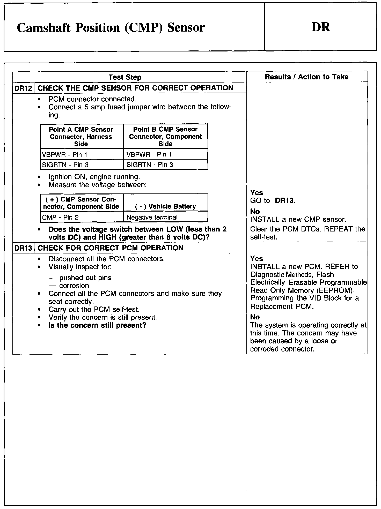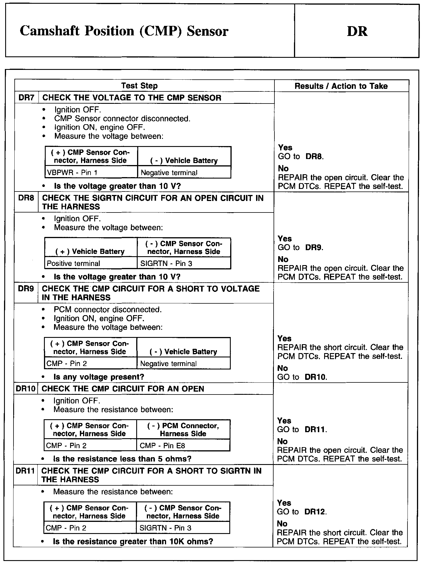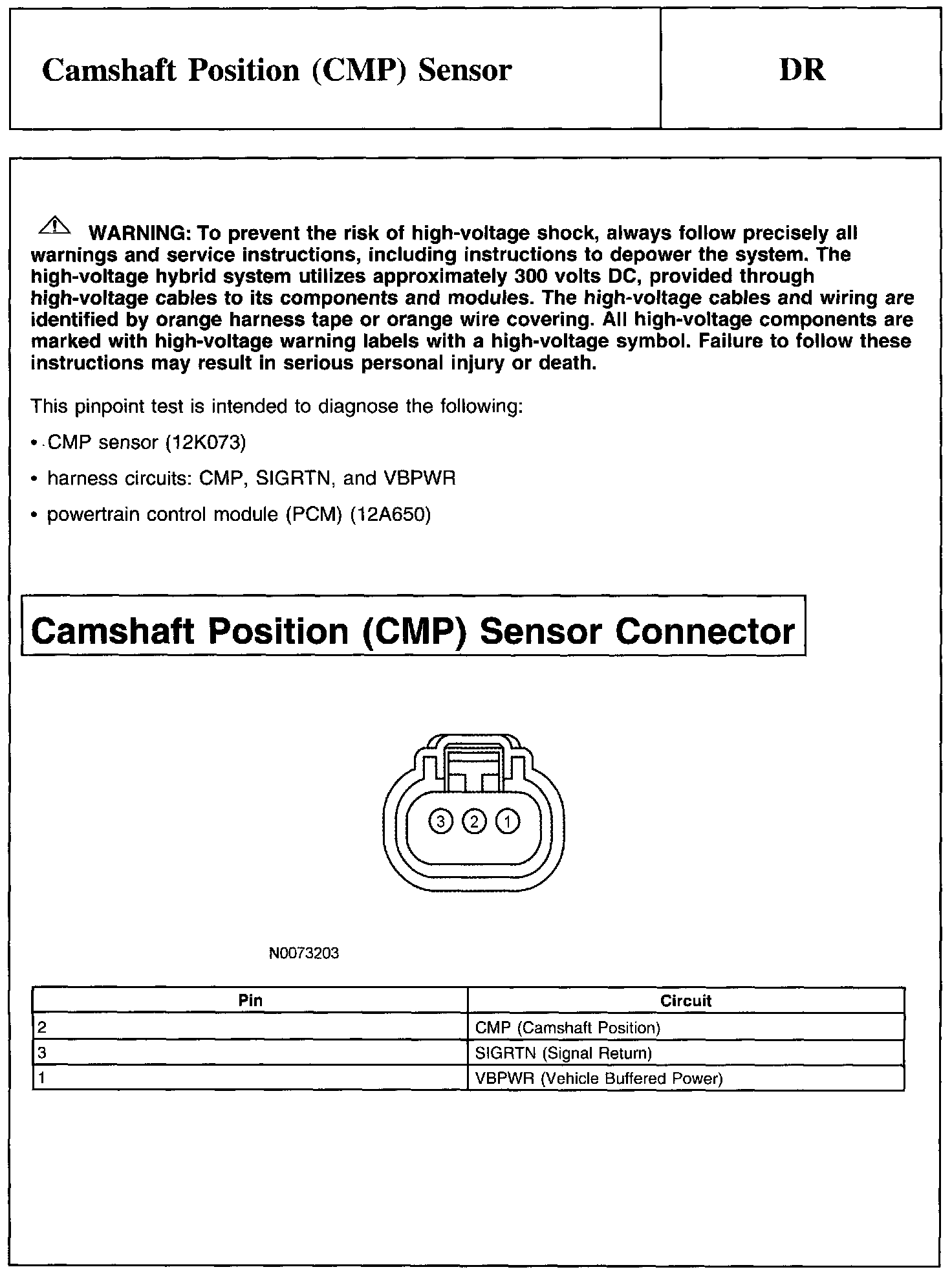 Test DR: Camshaft Position (CMP) Sensor