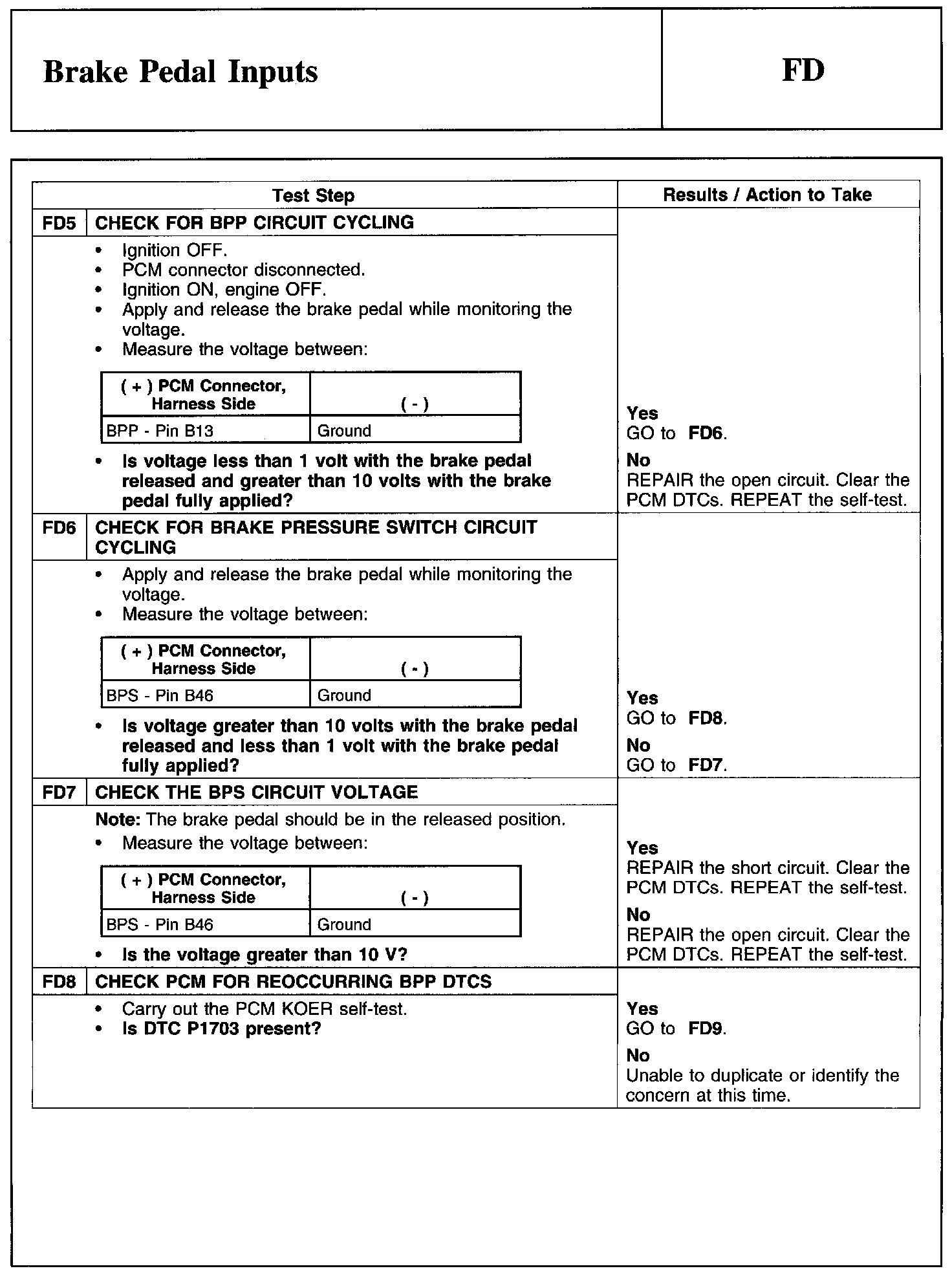 PINPOINT TEST FD: BRAKE PEDAL INPUTS
