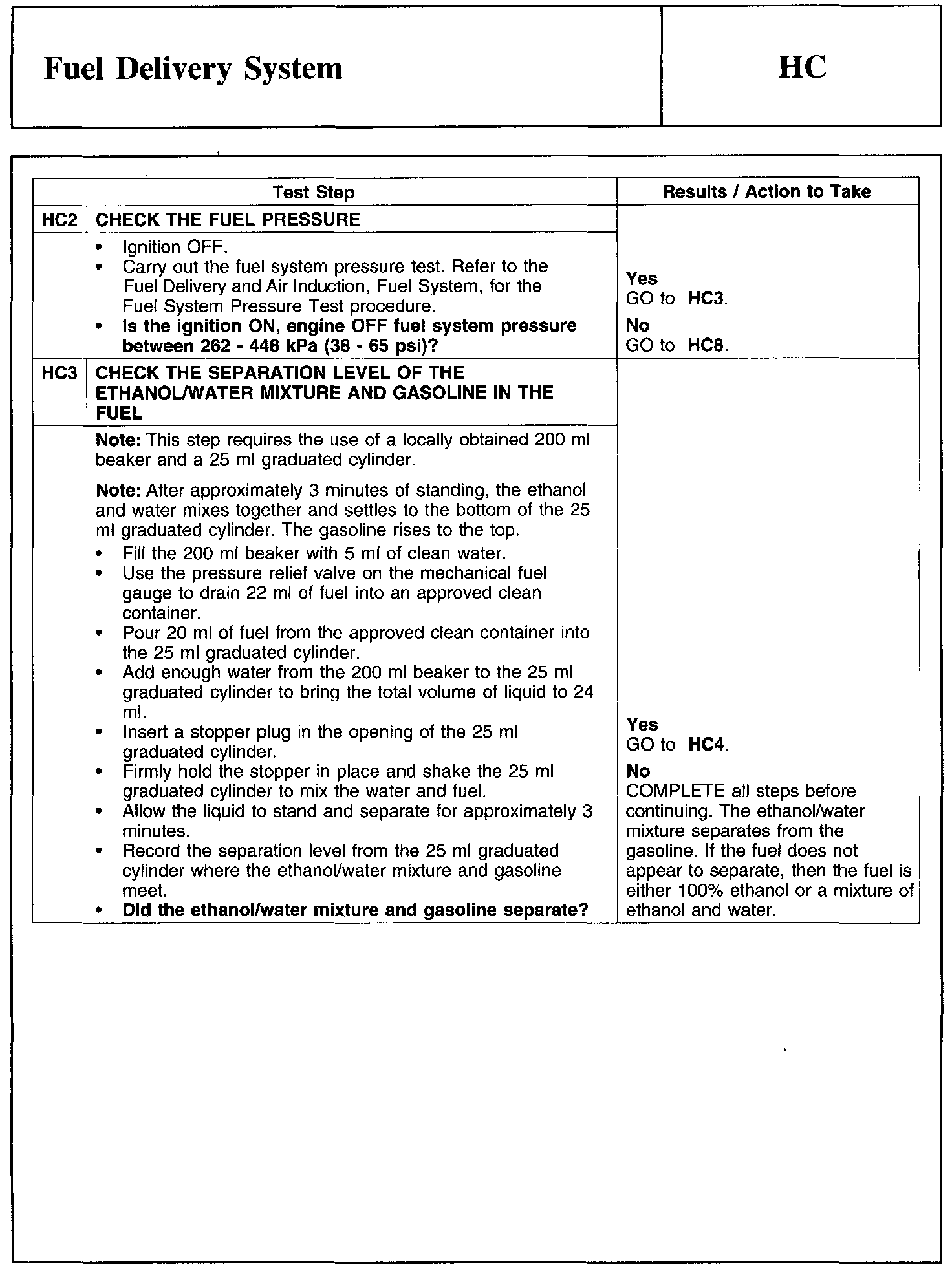 Test HC: Fuel Delivery System