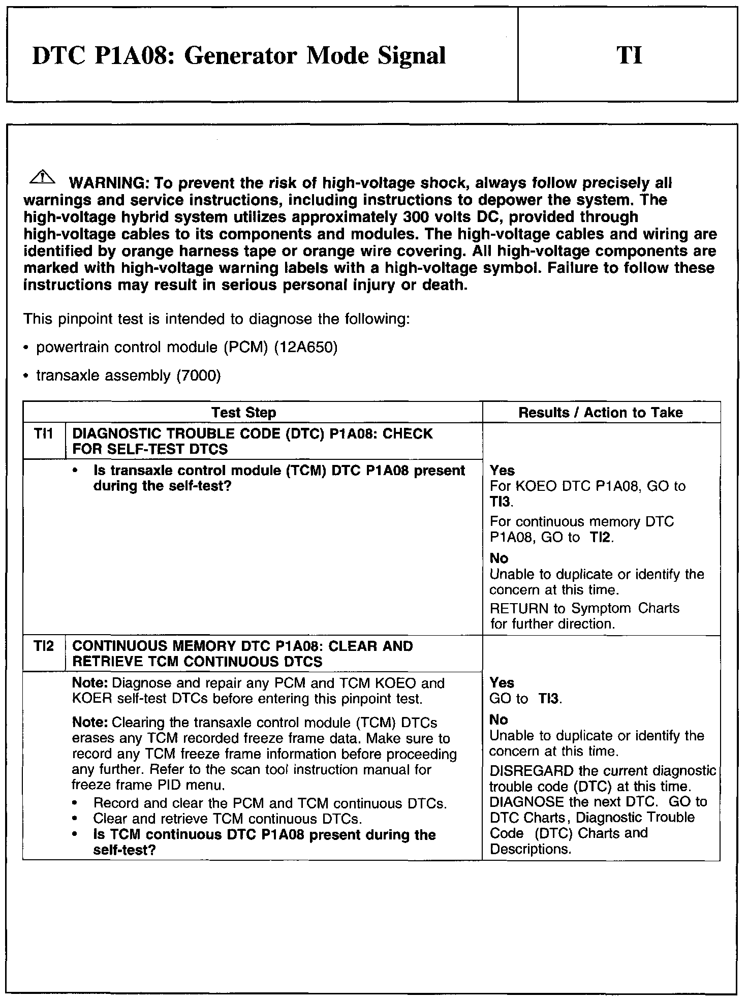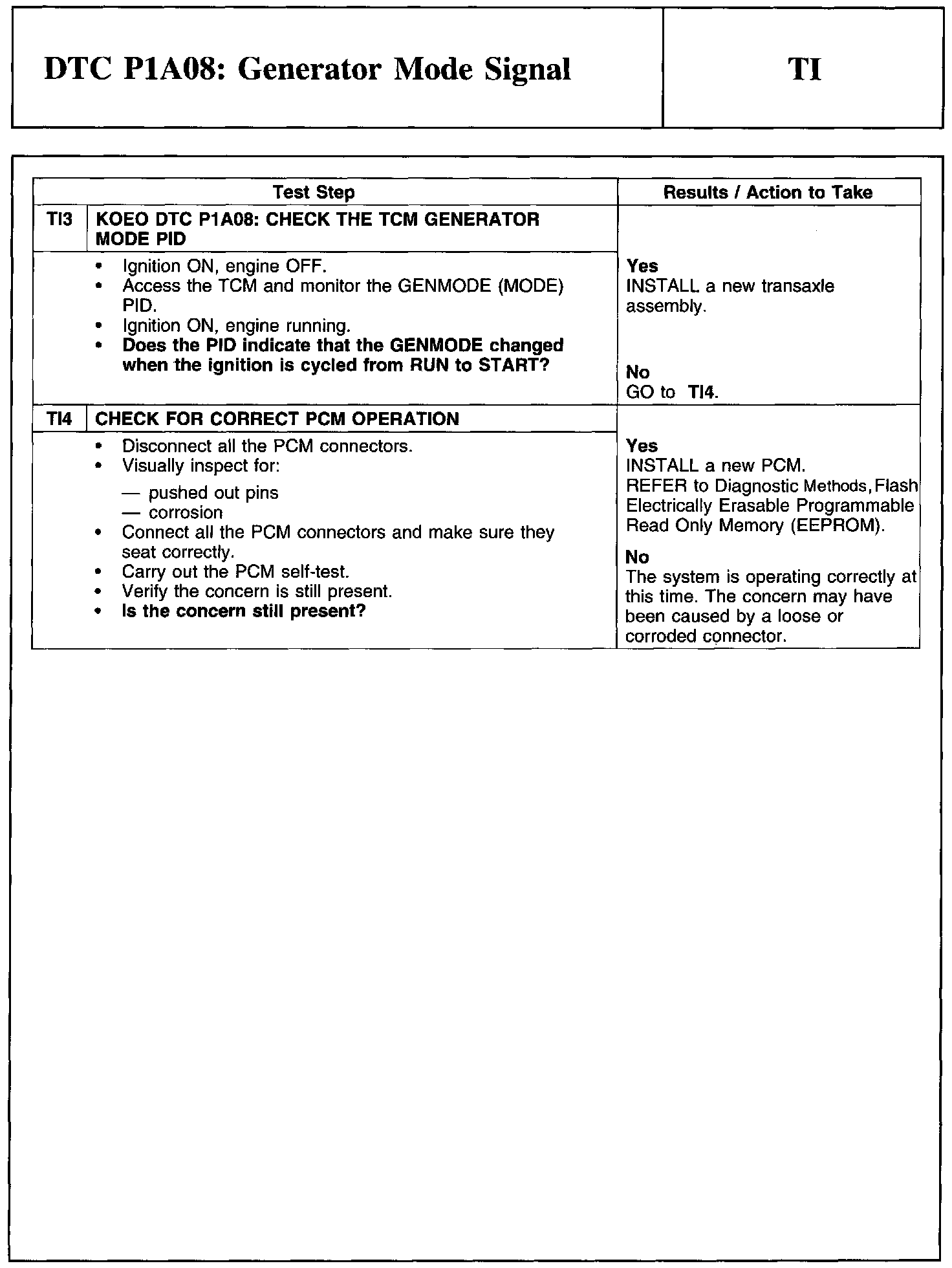 Test TI: DTC P1A08: Generator Mode Signal
