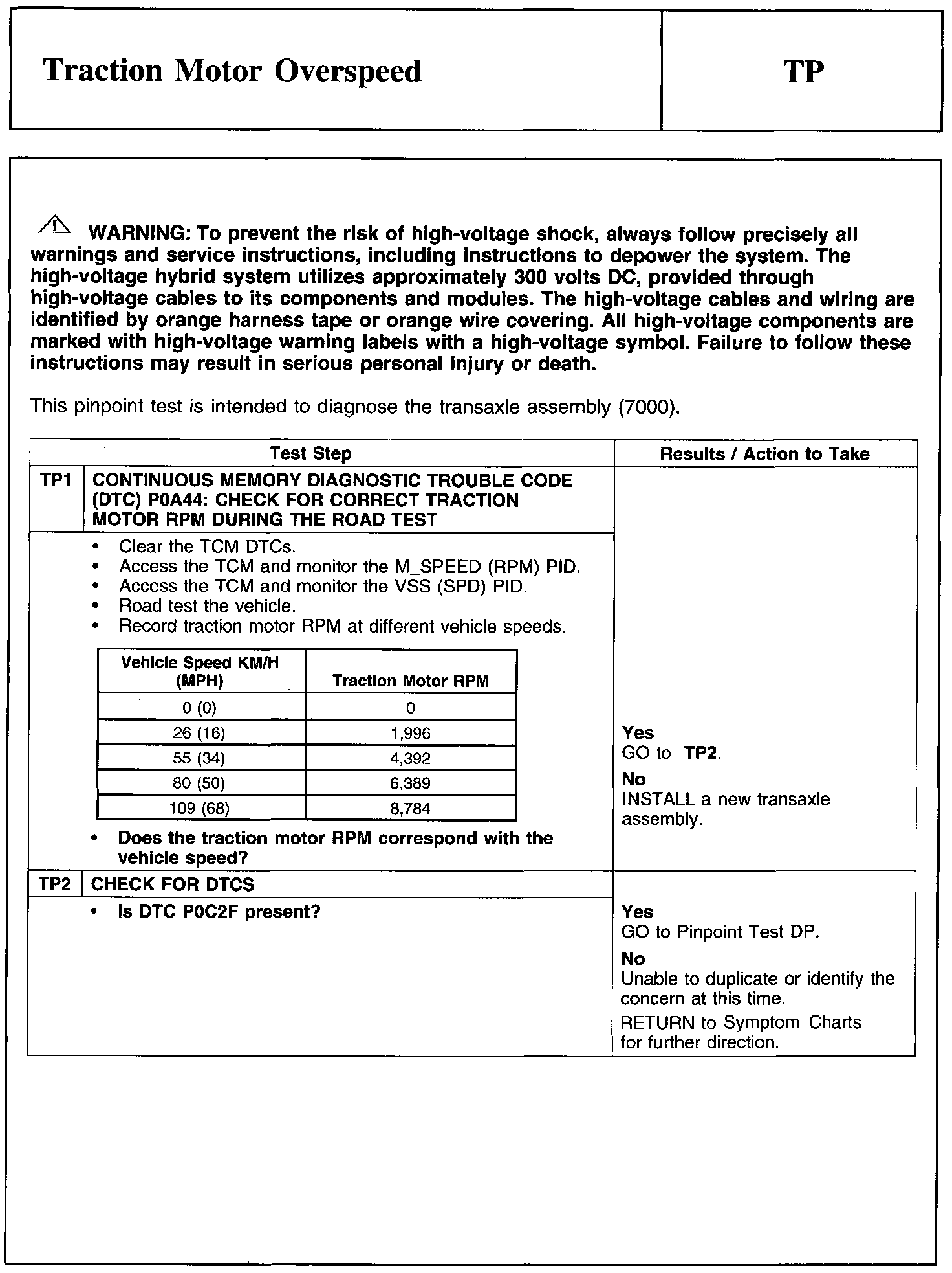PINPOINT TEST TP: TRACTION MOTOR OVERSPEED