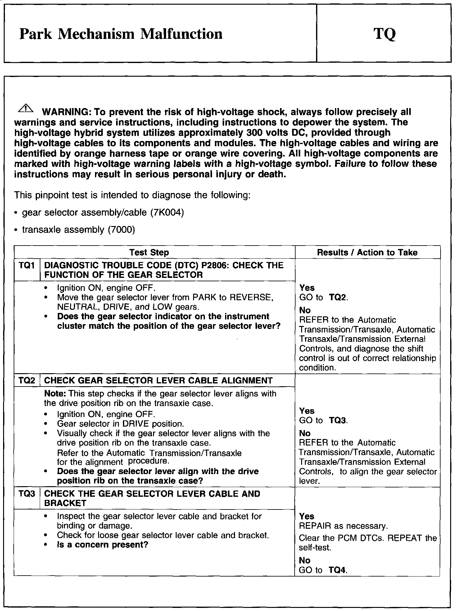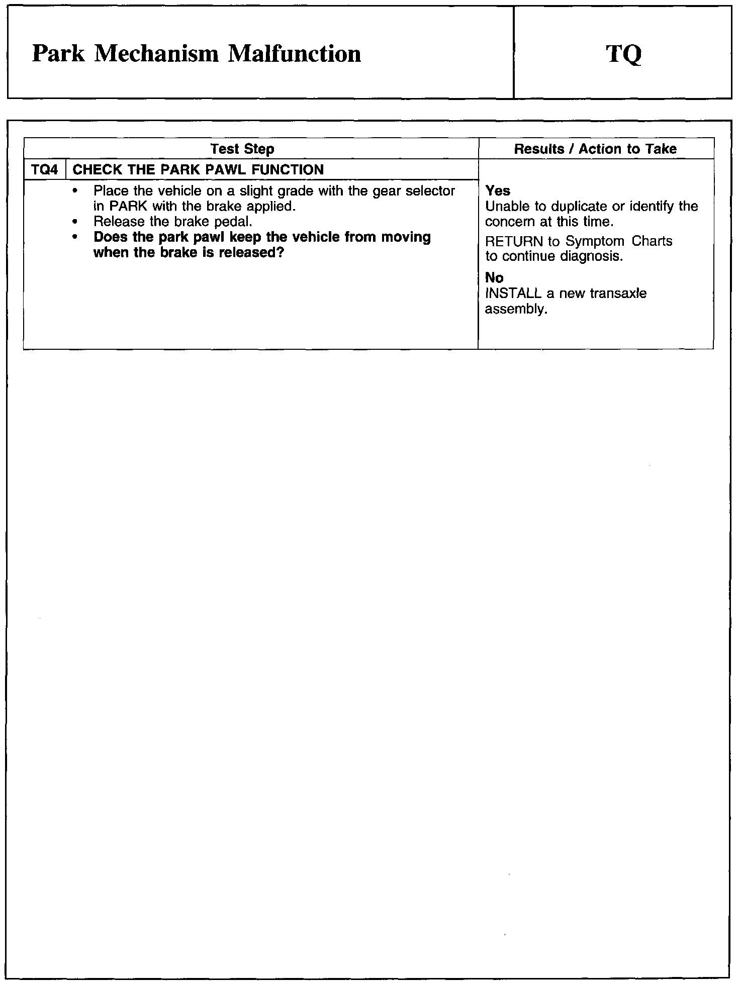 PINPOINT TEST TQ: PARK MECHANISM MALFUNCTION