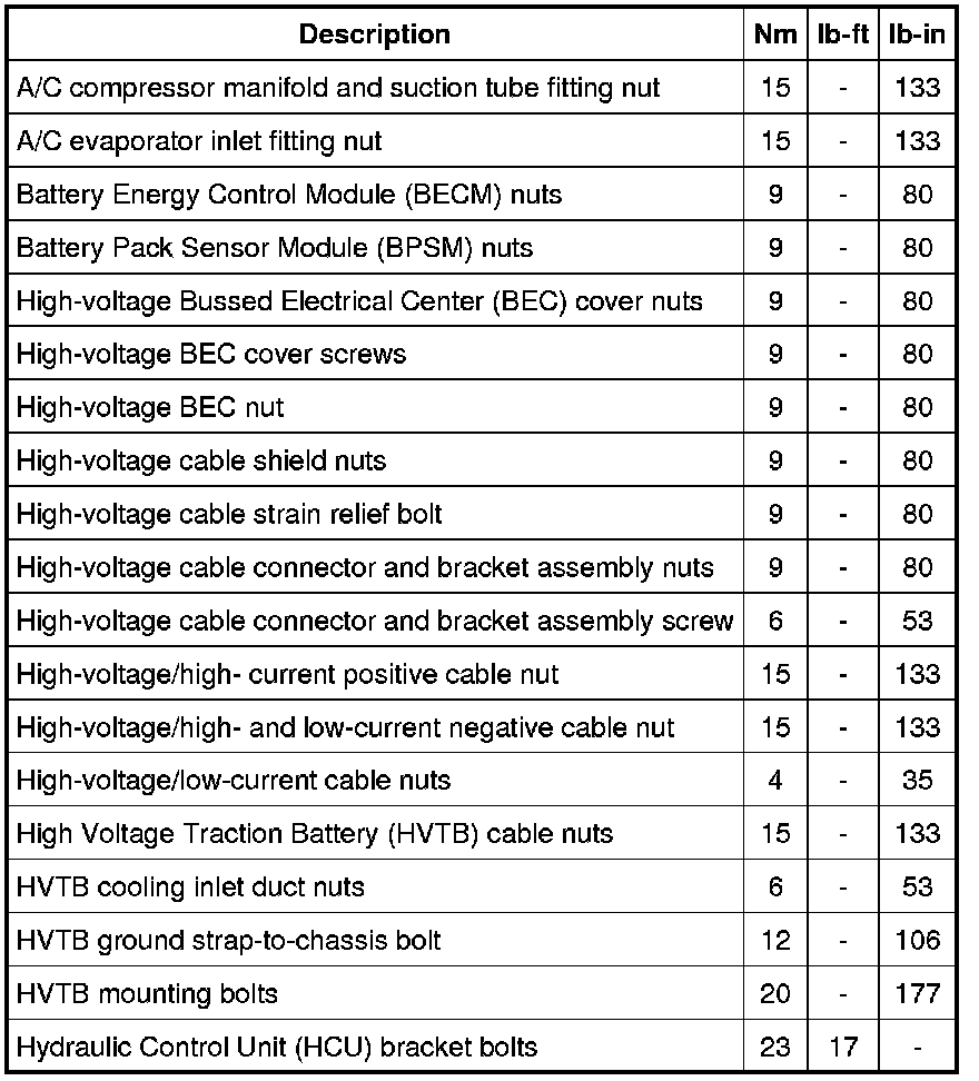 Torque Specifications