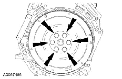 NOTICE: Loosen the 6 bolts evenly to prevent pressure plate damage.