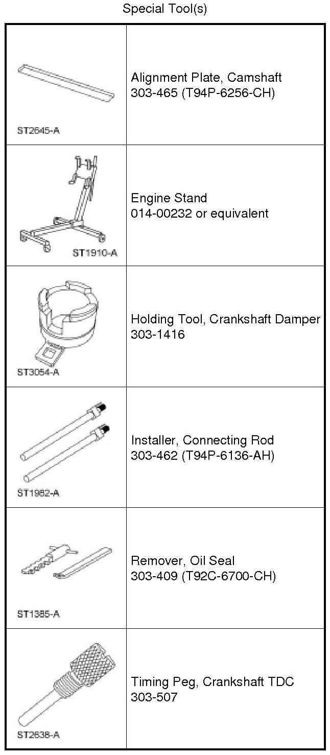 NOTICE: Do not loosen or remove the crankshaft pulley bolt without first installing the special tools as instructed in this procedure. The crankshaft pulley and the crankshaft timing sprocket are not keyed to the crankshaft. The crankshaft, the crankshaft sprocket and the pulley are fitted together by friction, using diamond washers between the flange faces on each part. For that reason, the crankshaft sprocket is also unfastened if the pulley bolt is loosened. Before any repair requiring loosening or removal of the crankshaft pulley bolt, the crankshaft and camshafts must be locked in place by the special service tools, otherwise severe engine damage can occur.