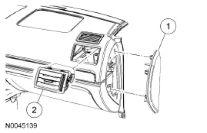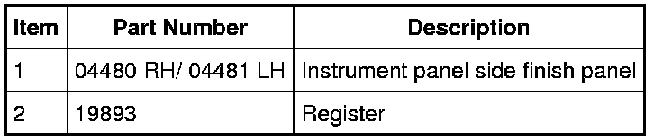 2. Working through the instrument panel end panel opening, release the 2 lower register clips and remove the driver or passenger side instrument panel register.