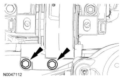 6. Remove the lower 2 transaxle insulator-to-frame bolts.