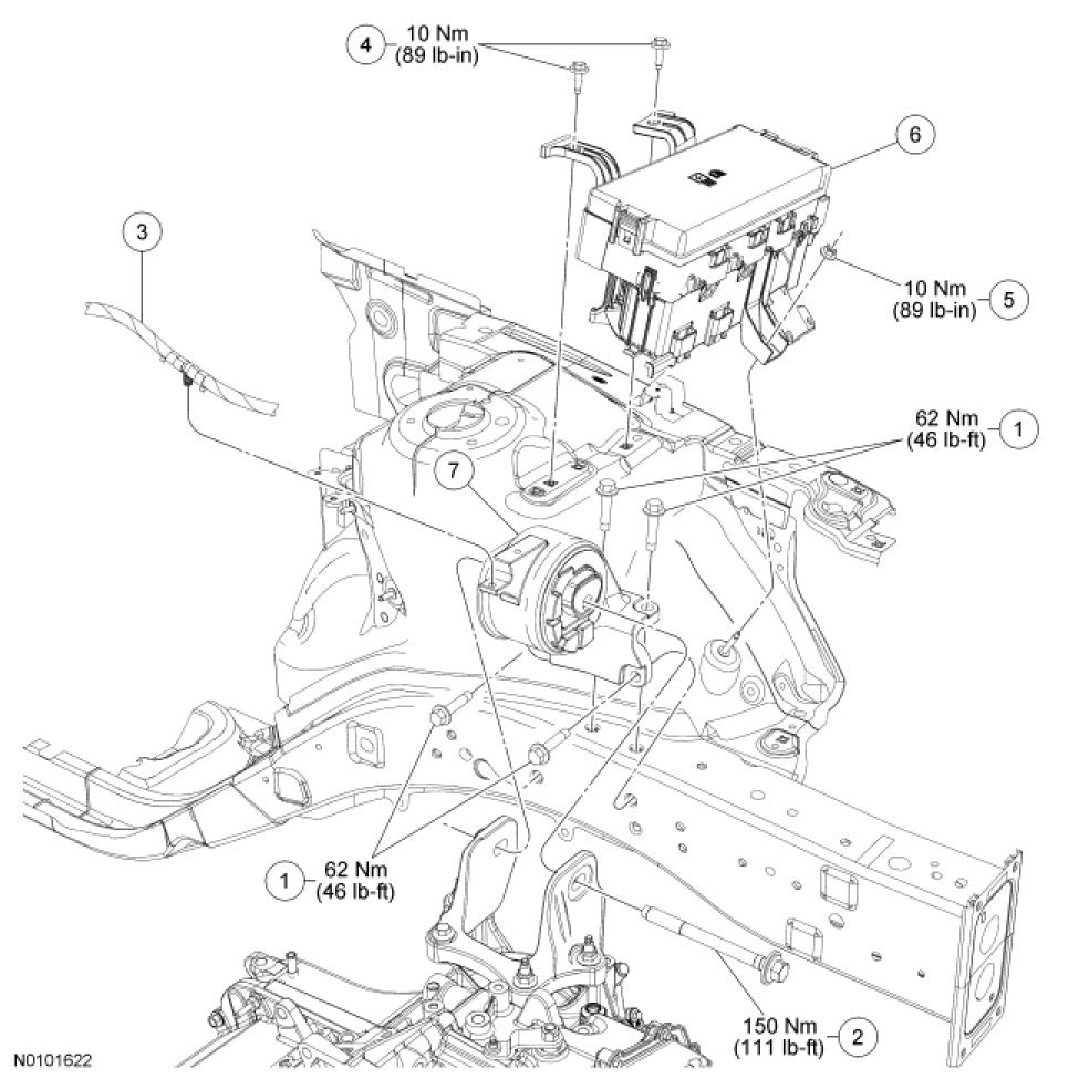 - Tighten to 62 Nm (46 lb-ft).
