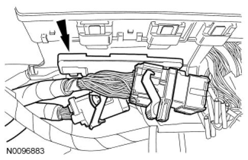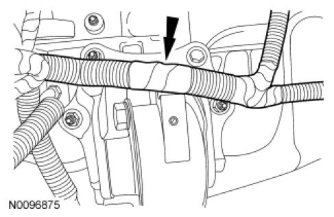 10. Disconnect the wiring harness retainer from the LH shock tower.