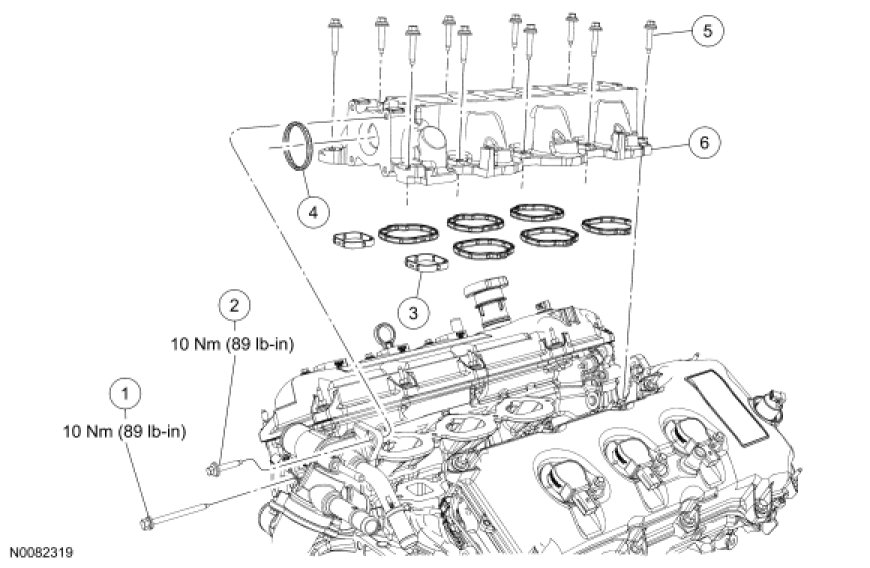 - Tighten in the sequence shown to 10 Nm (89 lb-in).