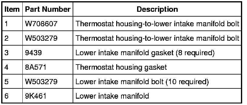 - Remove and discard the intake manifold and thermostat housing gaskets.
