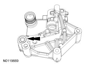- Align the hole in the lever with the hole in the tensioner housing.