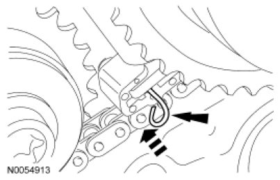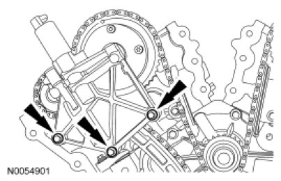 - Remove the RH VCT assembly, secondary timing chain and the RH exhaust camshaft sprocket as an assembly.