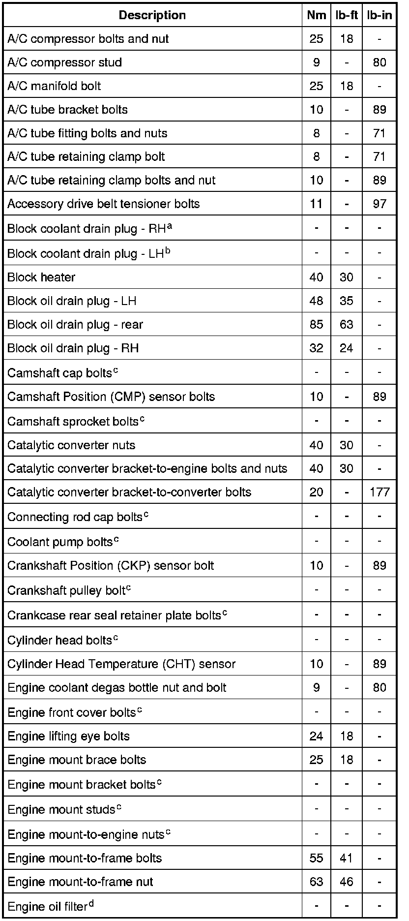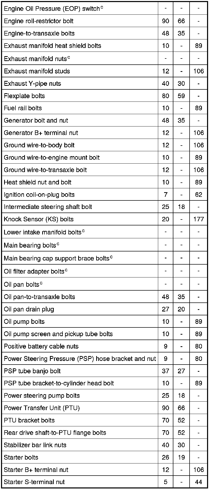 Torque Specifications