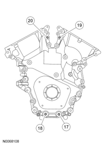 Install the engine front cover and bolts 17, 18, 19 and 20.