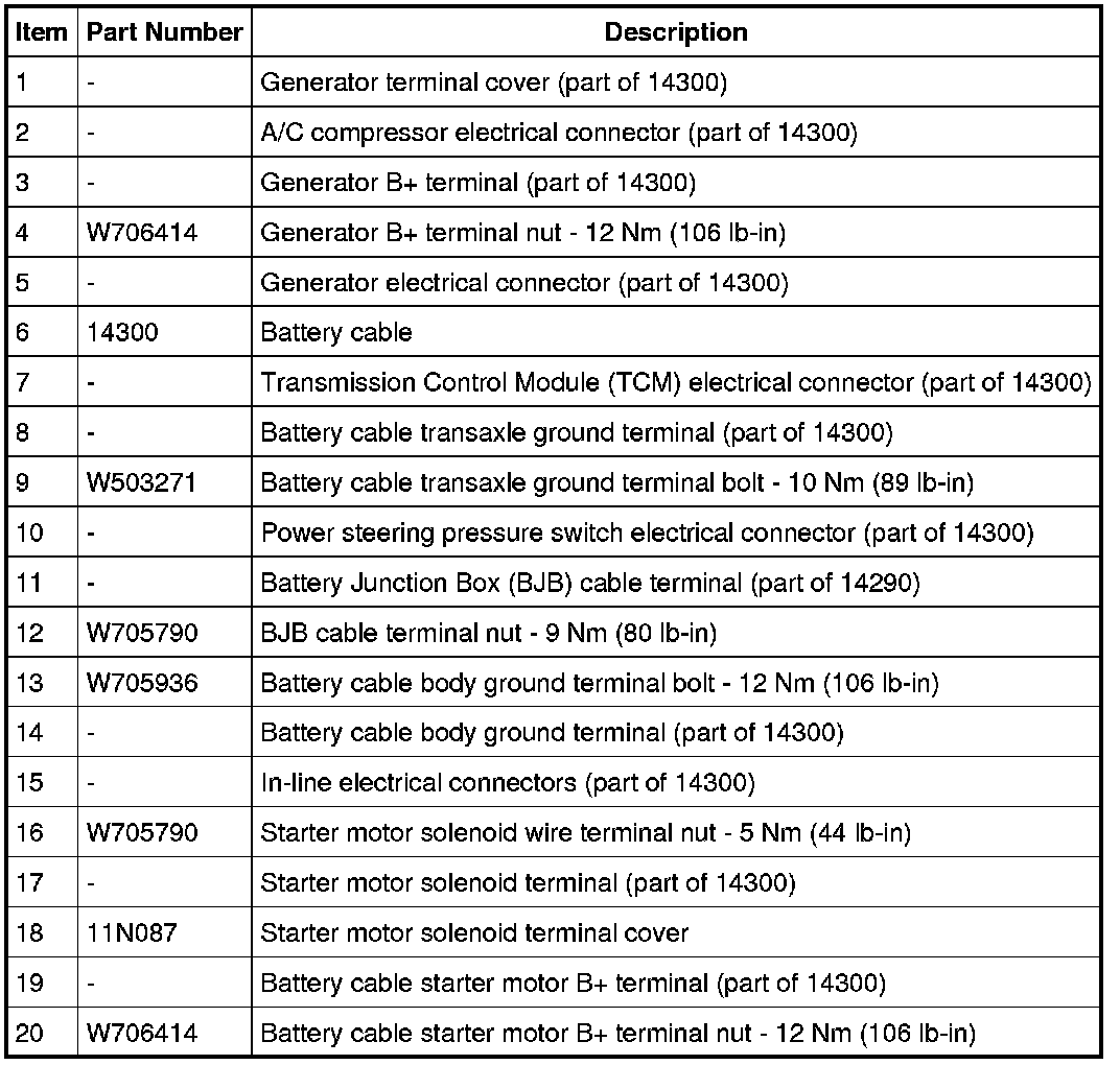 21. Remove the nut and position the Battery Junction Box (BJB) cable terminal aside.