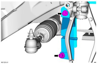 - To install, tighten the new nut to 48 Nm (35 lb-ft) and install a new cotter pin.