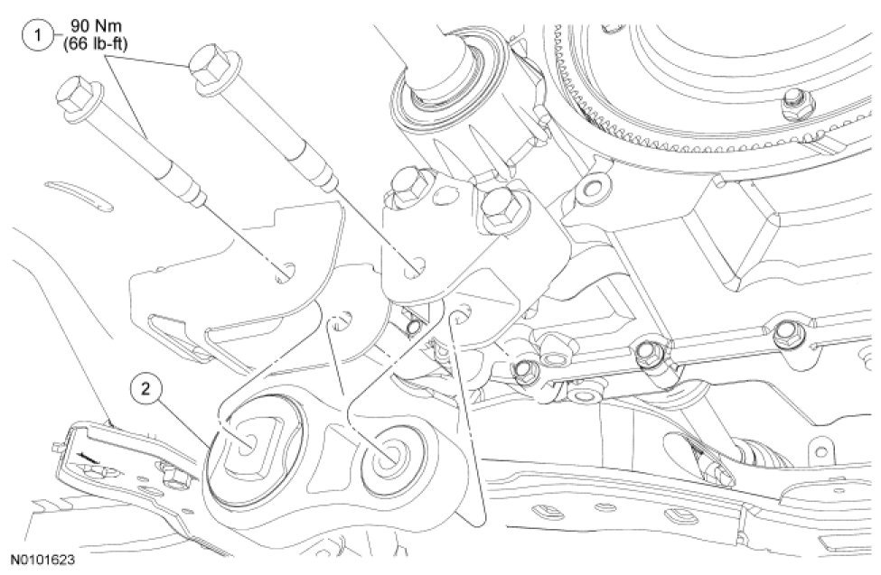 - Tighten to 90 Nm (66 lb-ft).