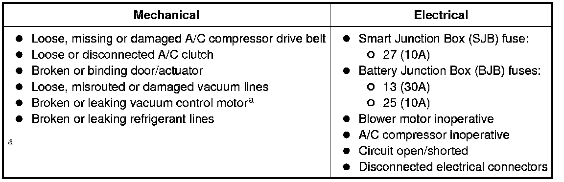 10. If not DTCs related to the concern are retrieved, GO to Symptom Chart - Climate Control Systems or GO to Symptom Chart - NVH. Symptom Chart - Climate Control Systems Symptom Chart - NVH