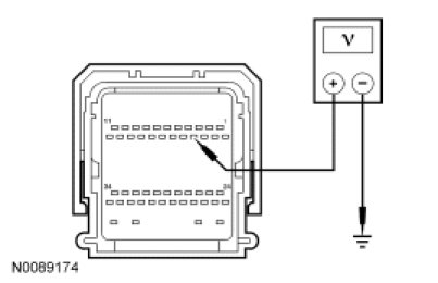 - Measure the voltage between ground and PCM C175b-15, circuit CH425 (GN/BU), harness side.
