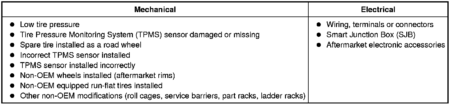 NOTE: Non-OEM modifications made to the vehicle may result in false TPMS warnings.