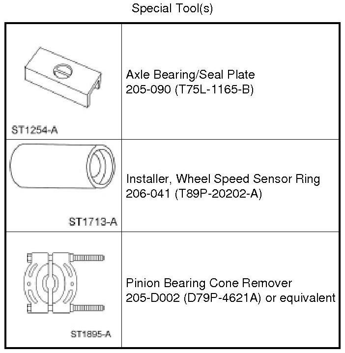 1. Remove the rear axle shaft. For additional information, refer to Rear Drive Axle/Differentia Service and Repair.