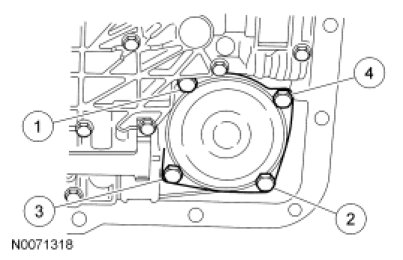 Remove the Torque Converter Aligners. Install the new converter housing-to-case screws. Tighten the screws in a star pattern.