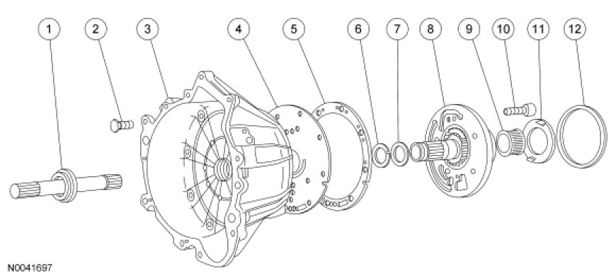 10. NOTE: The fluid pump-to-converter housing bushing is not serviced separately. If service is required, installation of a new converter housing will be needed.