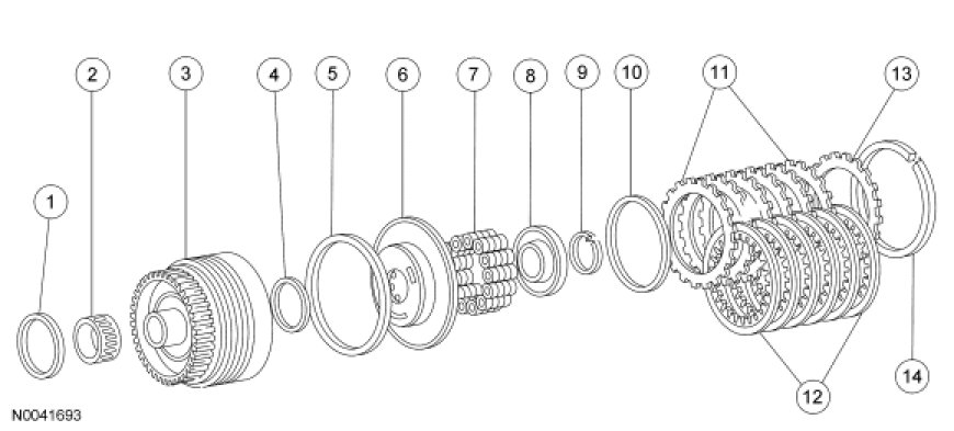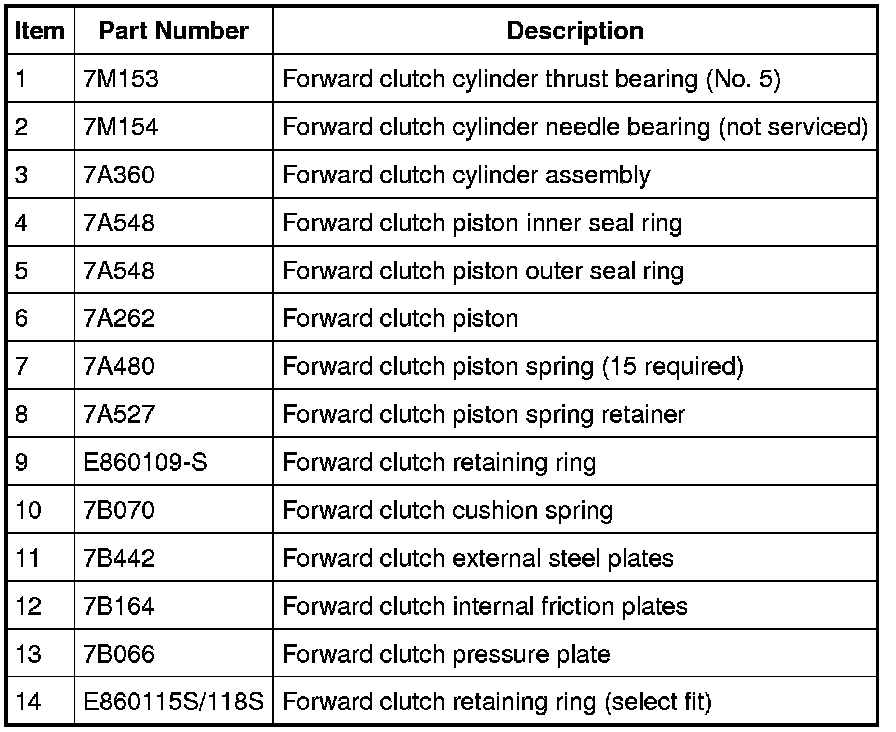 - Inspect the forward clutch plates for wear, damage or overheating.