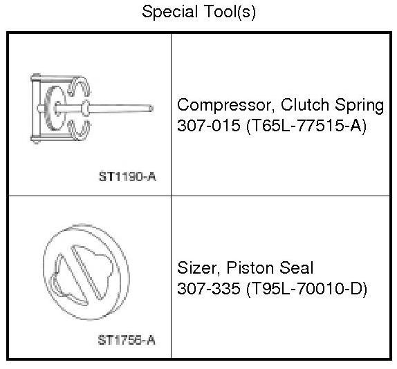 NOTICE: Do not fully compress the Clutch Spring Compressor or damage to the spring retainer may occur.