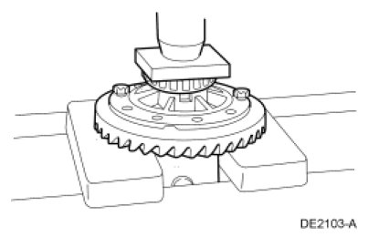 9. Install the 10 new ring gear bolts. Tighten in 2 stages.