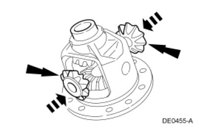1. Lubricate the differential side gear thrust washers and the differential side gear journals with axle lubricant, and assemble the washers to the gears.