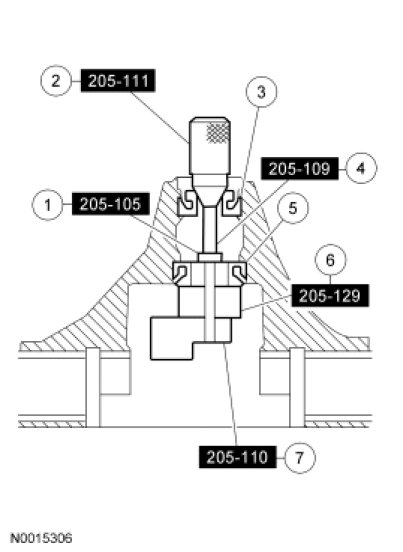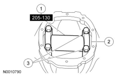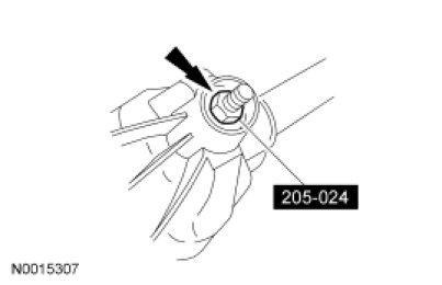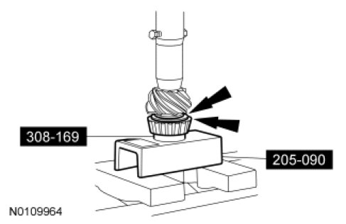1. Remove the drive pinion seal. For additional information, refer to Drive Pinion Flange and Drive Pinion Seal Rear Drive Axle/Differential - Ford 8.8-Inch Ring Gear.