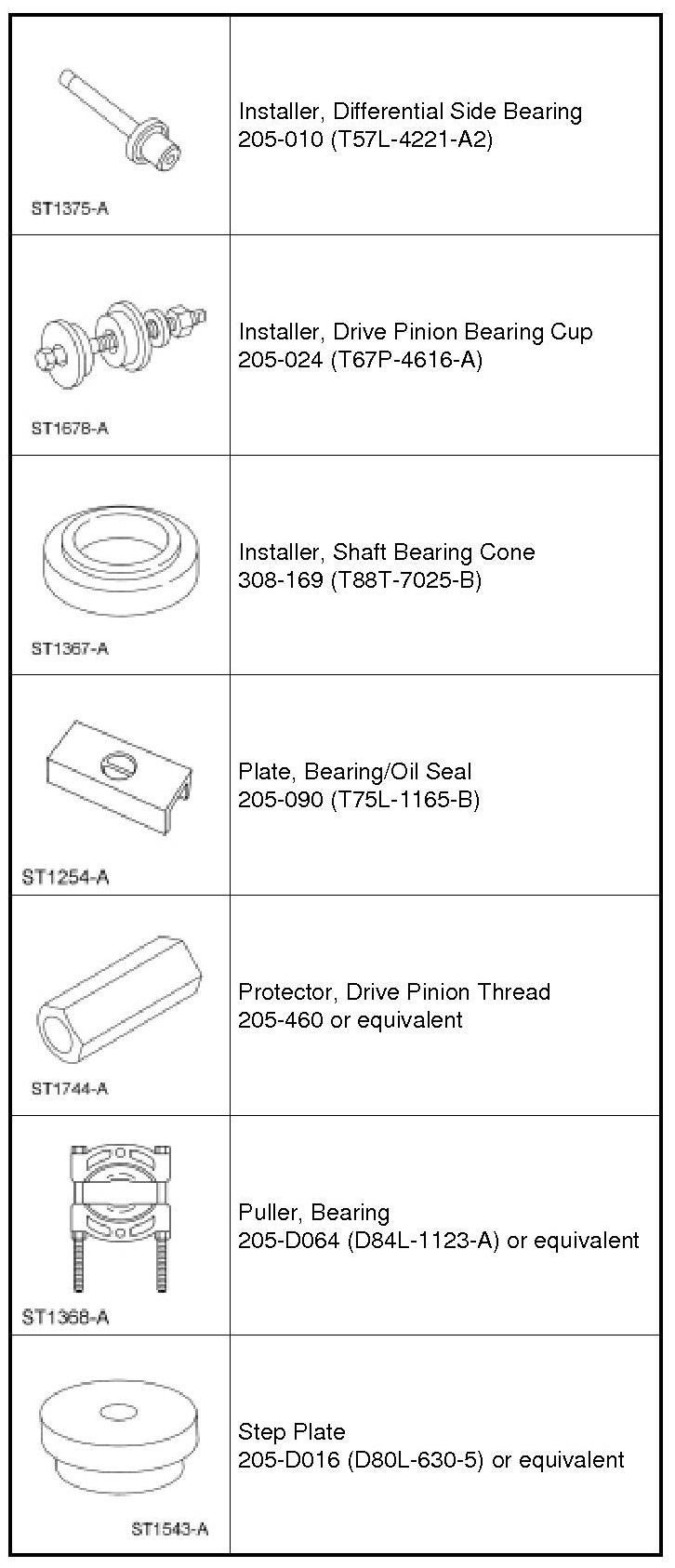 - After the correct drive pinion bearing adjustment shim thickness has been determined, remove all of the Adapters.