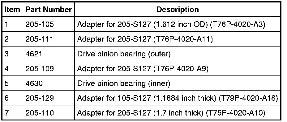 - After the correct drive pinion bearing adjustment shim thickness has been determined, remove all of the Adapters.