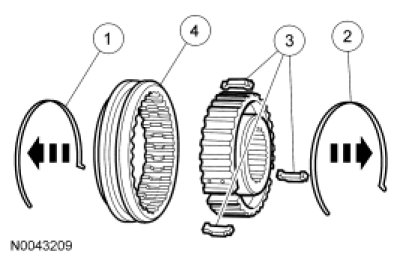 4. Turn the synchronizer over and install the opposite retaining spring.