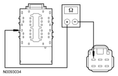 - Measure the resistance between passenger window control switch C604-3, circuit CPW14 (VT/WH) harness side and SJB C2280C-13, circuit CPW14 (VT/WH) harness side.