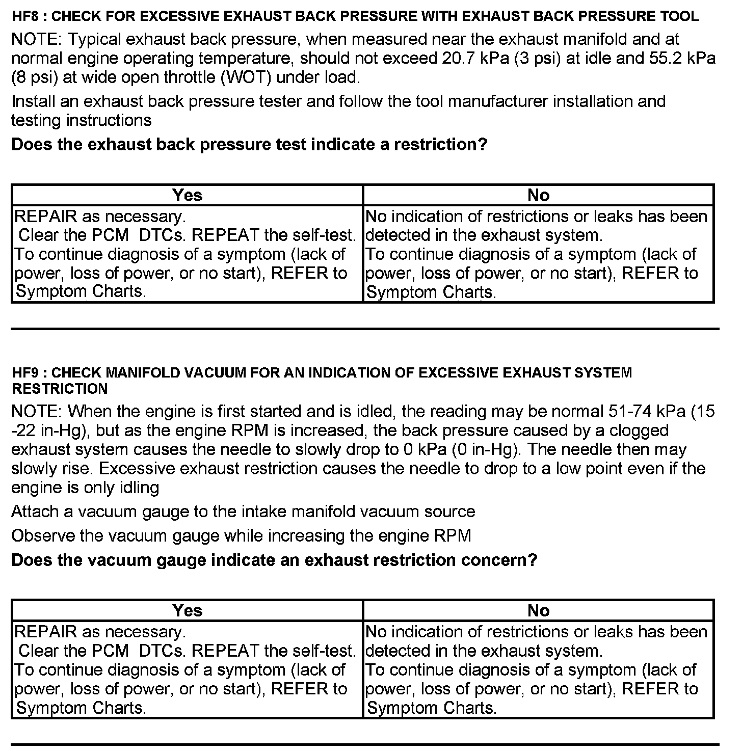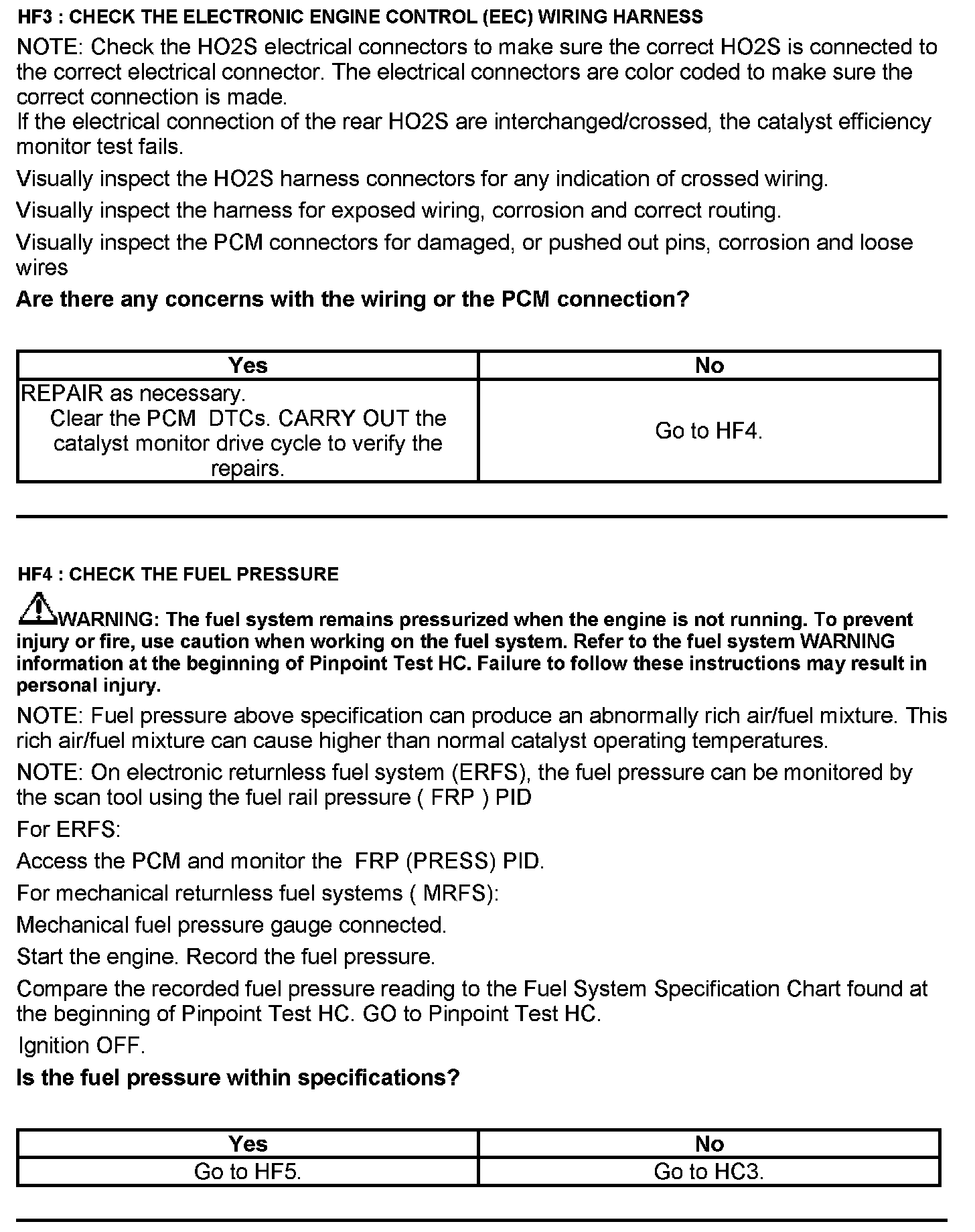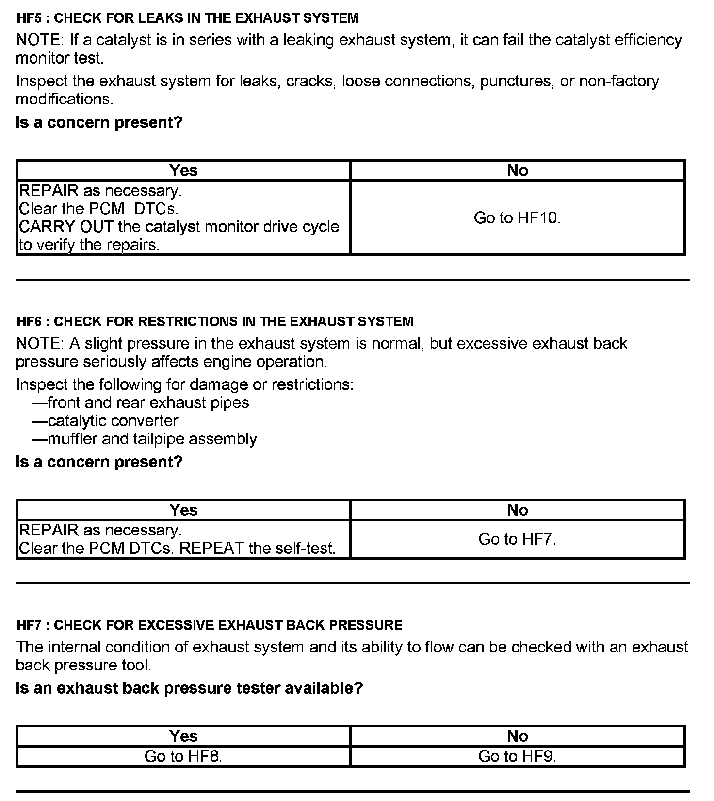 Test HF: Catalyst Efficiency Monitor and Exhaust Systems
